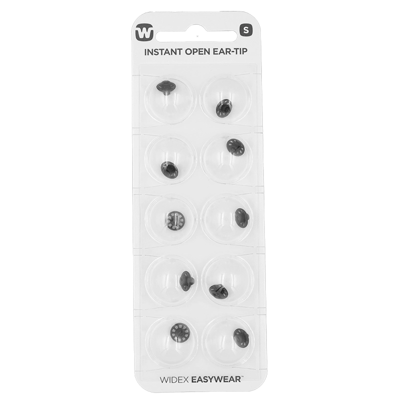 Widex Instant Open Ear-Tip eignet sich besonders bei mildem Hörverlust. Die offenen Kuppeln sitzen angenehm im Gehörgang und vermeiden ein Gefühl der Verschlossenheit. Sie verfügen über Ventilationslöcher, die für eine helle Klangwiedergabe sorgen, im Vergleich zu anderen Kuppeltypen.