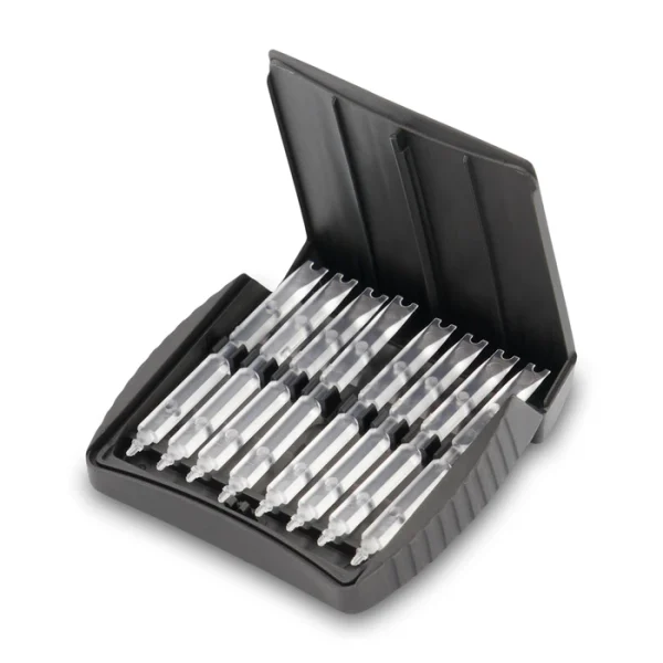MicGuard-Filter sind auf einem Werkzeug angebracht, bei dem die „leere“ Seite zum Entfernen des gebrauchten Filters verwendet wird. Auf der anderen Seite befindet sich das neue Filter, das einfach dort platziert wird, wo Sie das alte MicGuard-Filter entfernt haben.