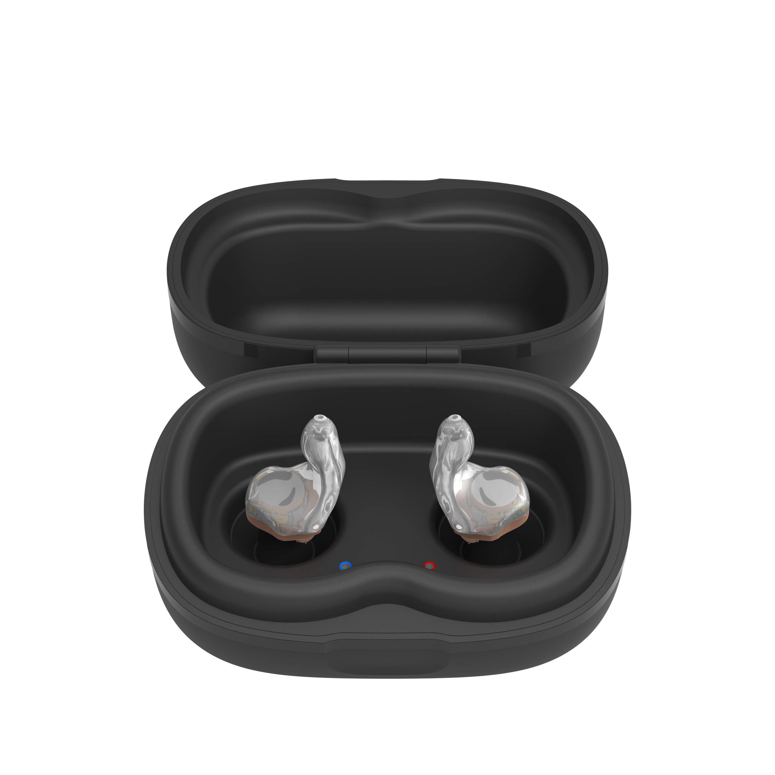 - Setzen Sie die Hörgeräte in die Ladeschächte ein, bis die LED-Anzeigen den Ladevorgang bestätigen.