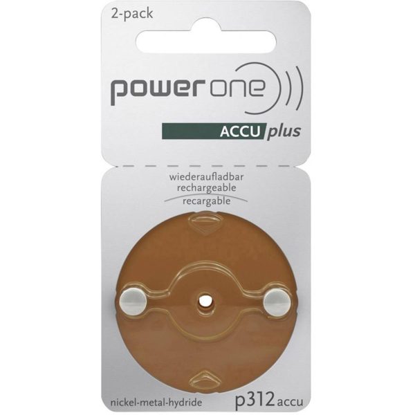 Dieses Produkt enthält 2 wiederaufladbare PowerOne AccuPlus 312 Akkus.